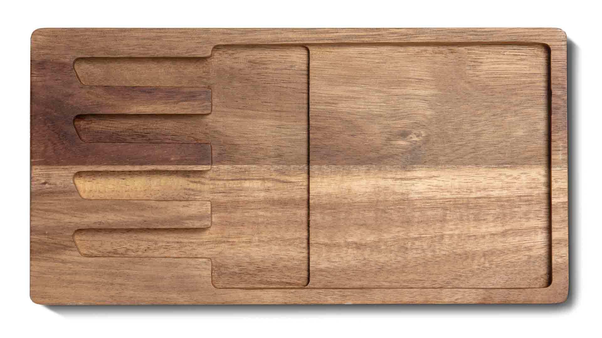 Elk lemmet is vervaardigd uit German Chromium-Molybdenum-Vanadium Steel (58HRC) en geslepen op 15°. Dit staal houdt zijn scherpe rand en weerstaat zowel chips als roest, waardoor je messen langdurig vlijmscherp blijven.Magnetische houten houder