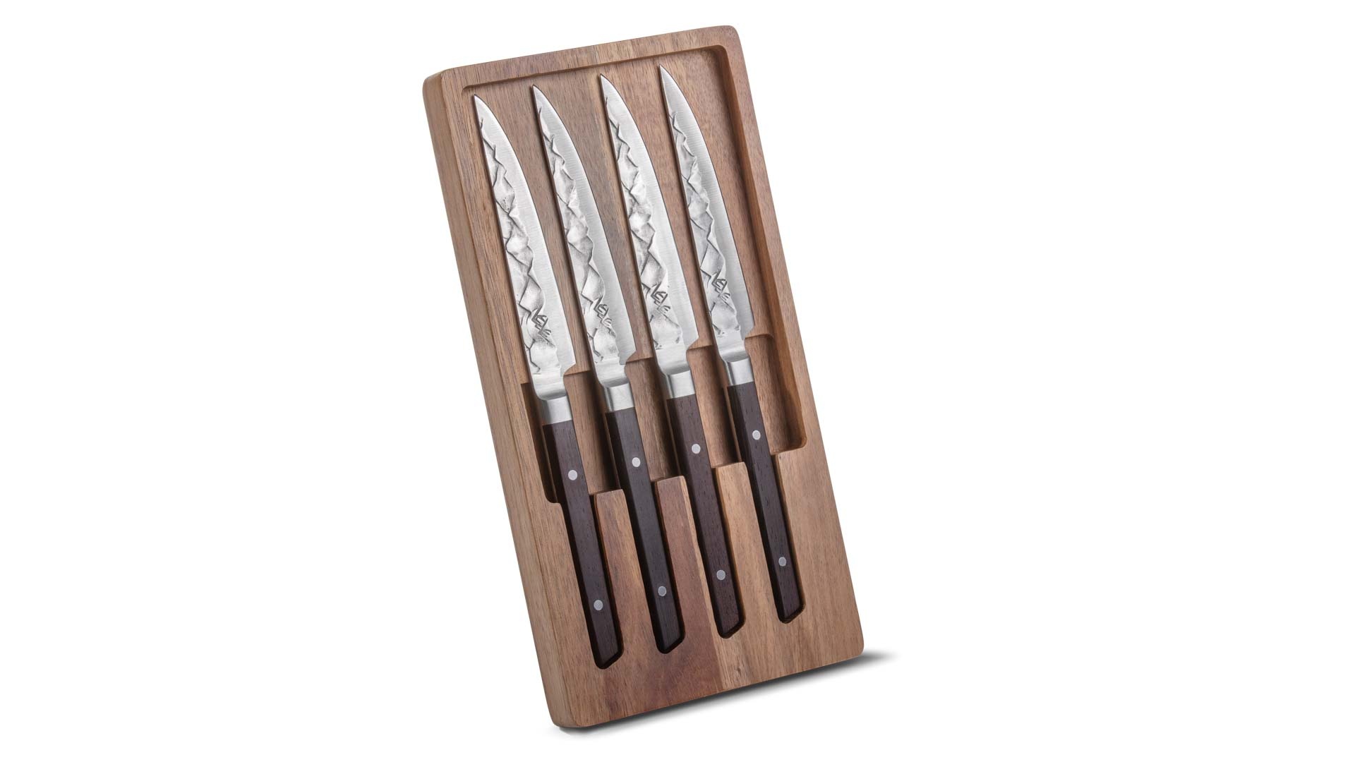 Onze steakmessen zijn volledig over-engineered voor de ultieme snijervaring. In deze set vind je: