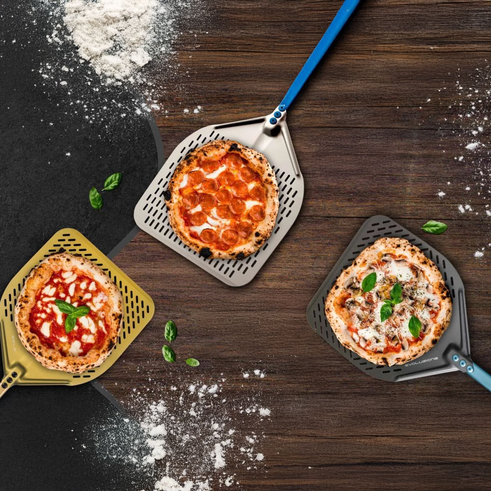 Gi.Metal – Azzura 30x30 - 30cm Pizzaschep geperforeerd – Azzurra, aluminium kop & handgreep