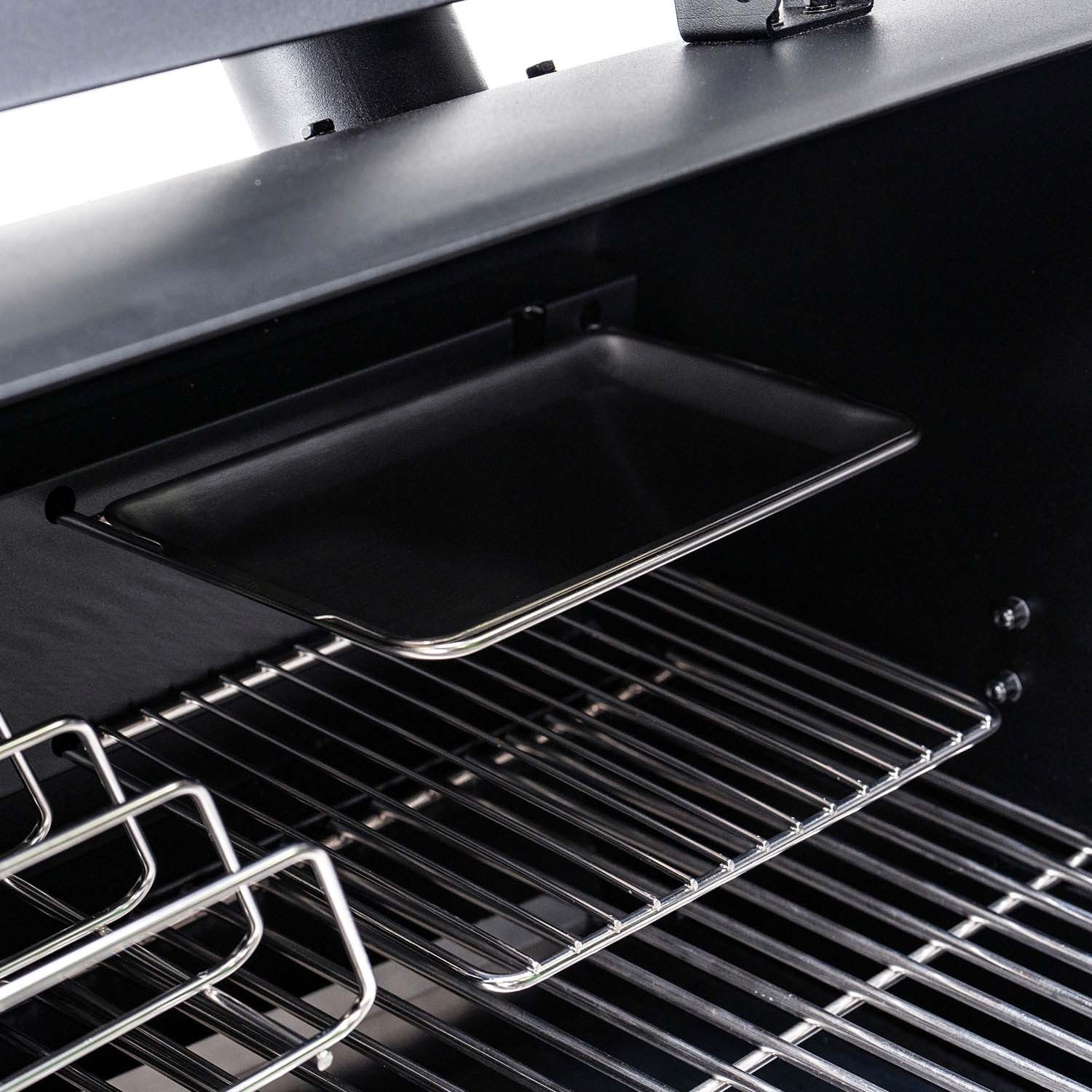 Met de Green Mountain Grills RACKT Griddle Module Prime 2.0 breid je de interne ruimte van je pelletgrill uit met een extra roestvrijstalen bak van 355 cm² (55 in²). Dankzij het gepatenteerde RACKT™-systeem klik je deze module eenvoudig in de daarvoor bestemde sleuven van de RACKT Backboard. Zo creëer je in één stap een vlakke griddle-oppervlakte om pannen, groenten of smaller vlees gelijkmatig te garen, terwijl het vuur en de rook daaronder onverminderd circuleren.