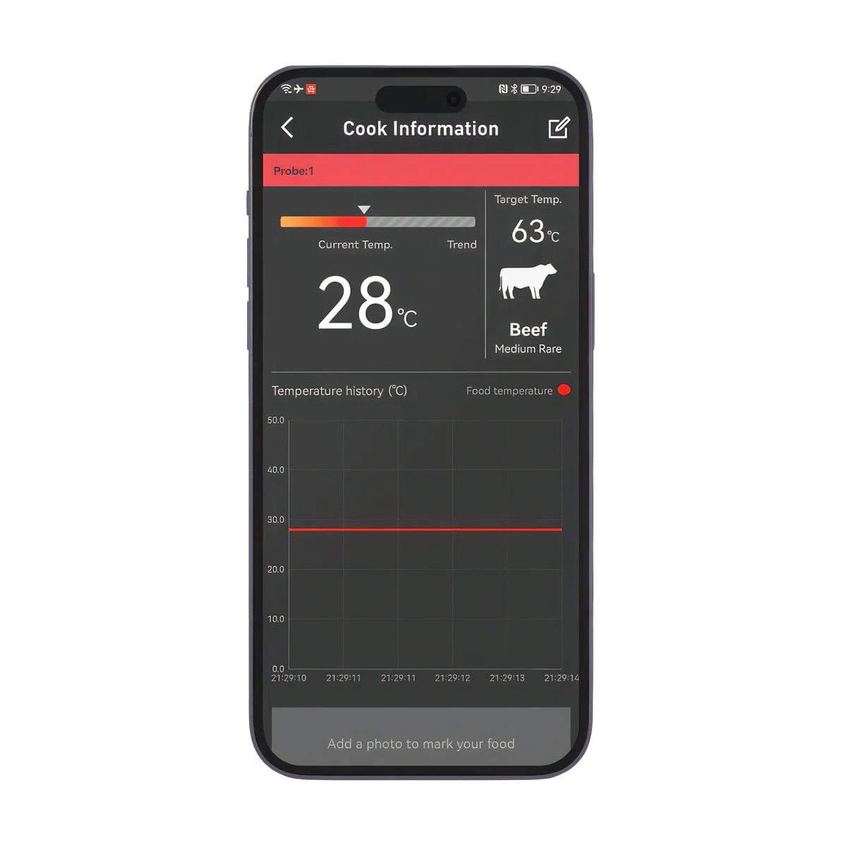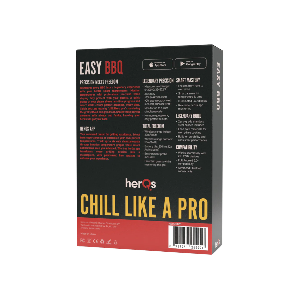 De thermometer maakt gebruik van Bluetooth-connectiviteit, wat betekent dat je draadloos verbinding kunt maken met jouw smartphone of tablet. Via de HerQs app krijg je real-time updates over de temperatuur van jouw gerechten, waar je ook bent. Zo kun je gerust even bij jouw gasten zitten, een drankje halen, of andere taken uitvoeren, terwijl je jouw BBQ-proces nauwlettend in de gaten houdt.