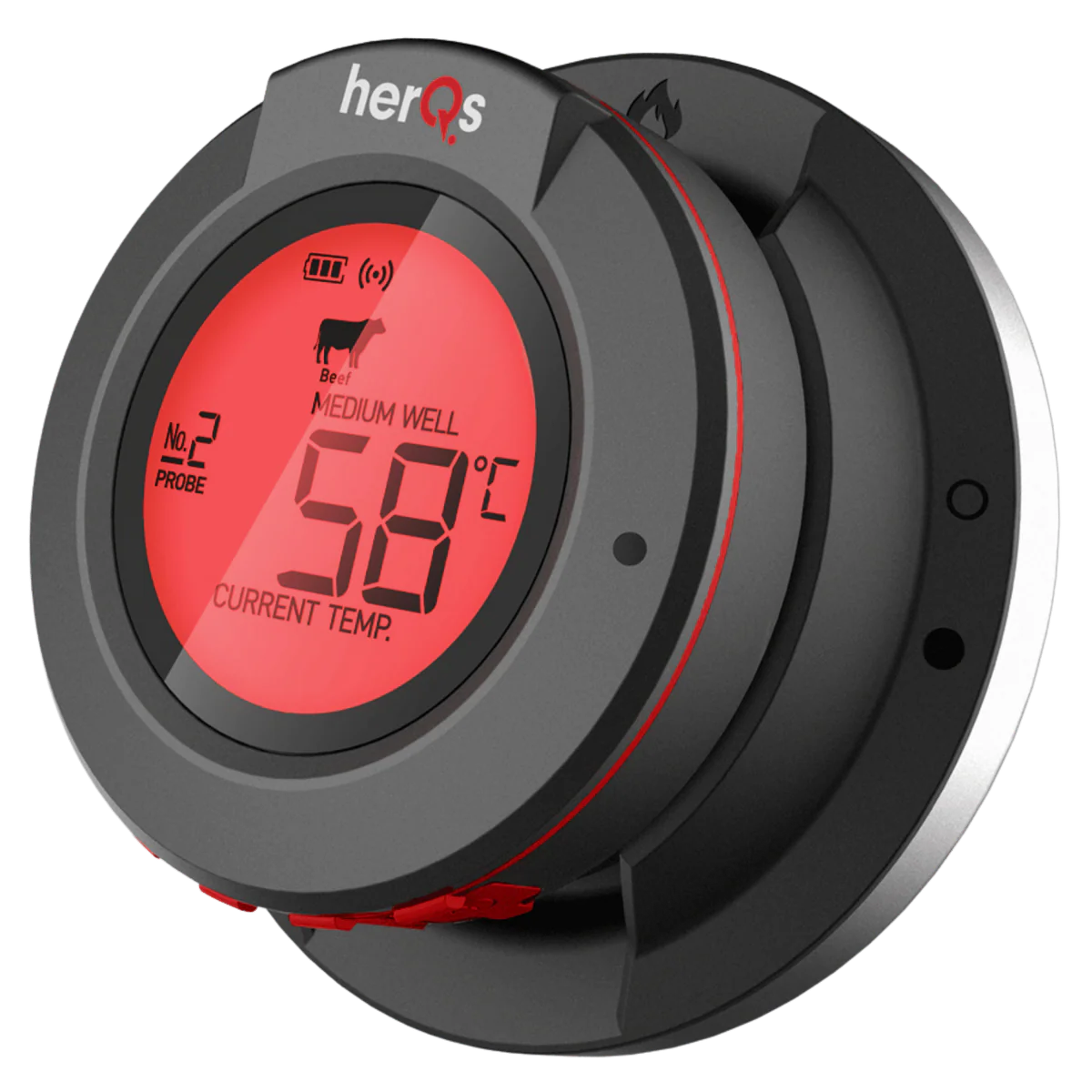 Met de HerQs Connected Digital Dome Thermometer kun je de temperatuur van jouw grill- of smokerdome nauwlettend in de gaten houden. Het grote, duidelijke LCD-scherm geeft je directe feedback, waardoor je gemakkelijk de temperatuur kunt aflezen en aanpassen naar jouw gewenste niveau.