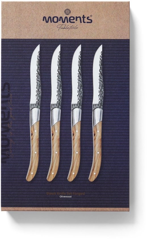 Moments – Steakmessen set 4 stuks forged met RVS lemmet en olijfhout handvat