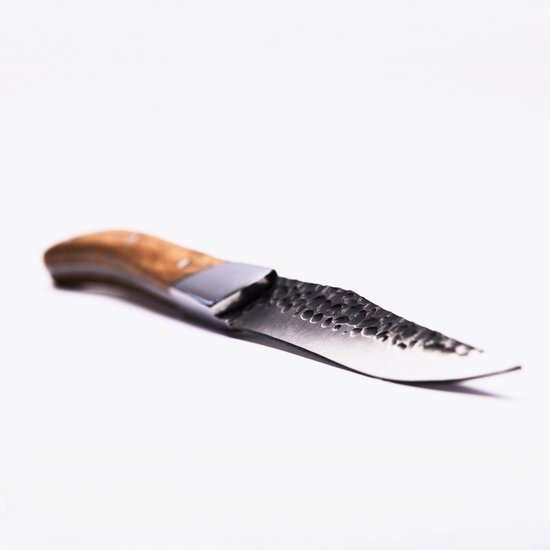 Set van 4 forged steakmessen met geslepen hamerslag lemmet uit één stuk gesmeed en olijfhouten handvat. Perfecte balans en stevige grip voor moeiteloos snijden van steaks en gegrild vlees. Stijlvolle messen voor BBQ en tafelgebruik. Lees meer