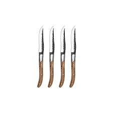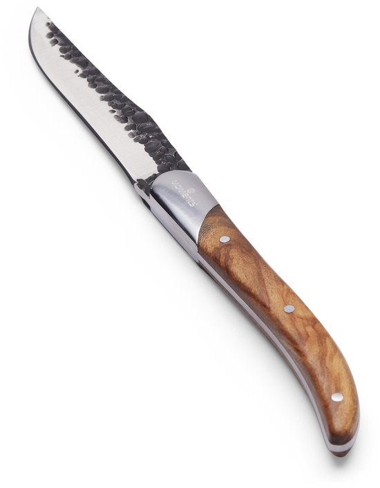 Het olijfhouten handvat ligt prettig in de hand en geeft iedere tafel een ambachtelijke uitstraling. Dankzij de stevige constructie en scherpte snijden de messen soepel door steaks en gegrild vlees zonder de structuur te beschadigen.