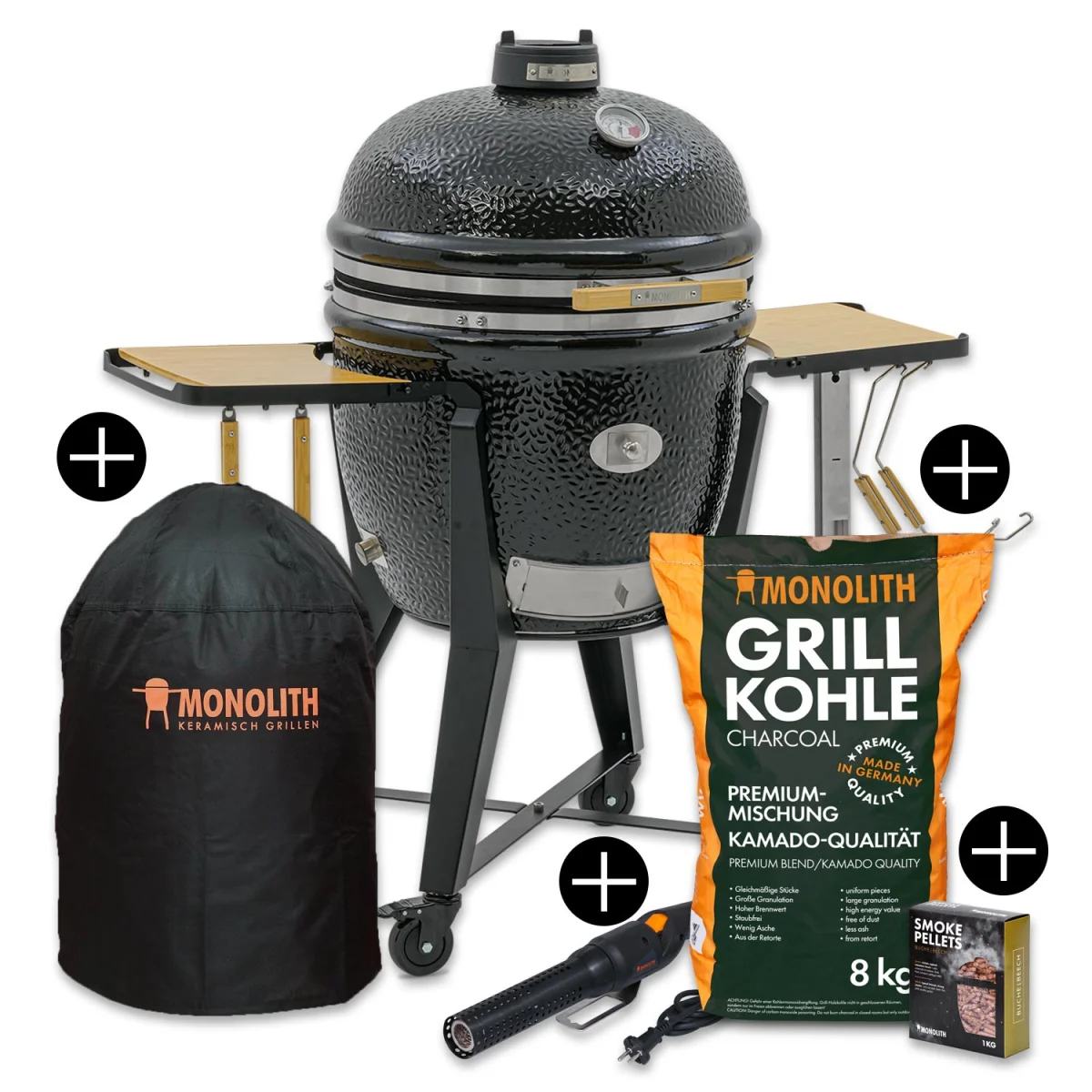 Monolith TWO.66 XL kamado starterset met houtskool, rookpellets, hoes & elektrische aansteker