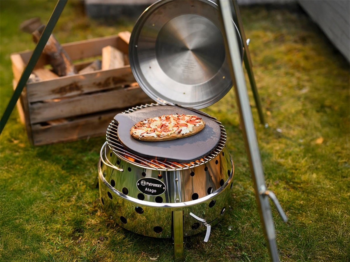 Het grilldeksel vangt de opstijgende warmte op en houdt deze binnen de Atago. Hierdoor werk je met stabielere temperaturen en minder brandstofverbruik.