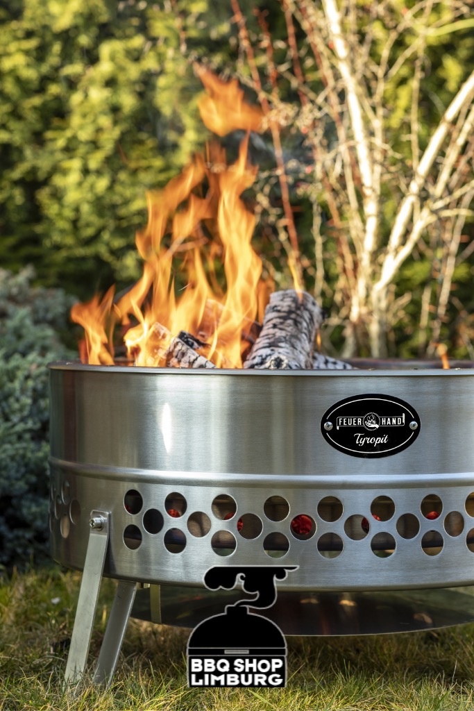 De Tyropit is opgebouwd uit een dubbelwandige RVS constructie die zorgt voor een efficiënte luchtcirculatie. Hierdoor verbrandt hout schoner en gelijkmatiger, met minder asresten en een stabiel vuur.