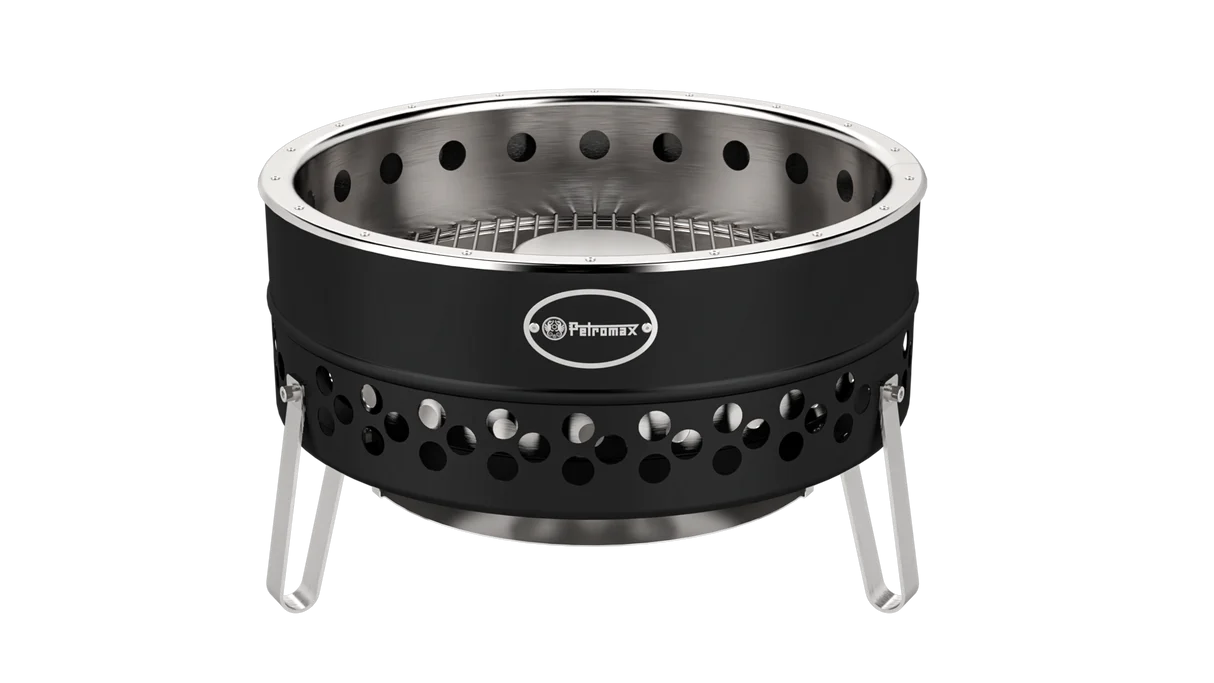 Rookarme Petromax Tyropit Black Edition vuurschaal van RVS. Dubbelwandig ontwerp met secundaire verbranding voor minder rook en krachtige vlammen. Perfect voor sfeer én outdoor cooking. Lees meer